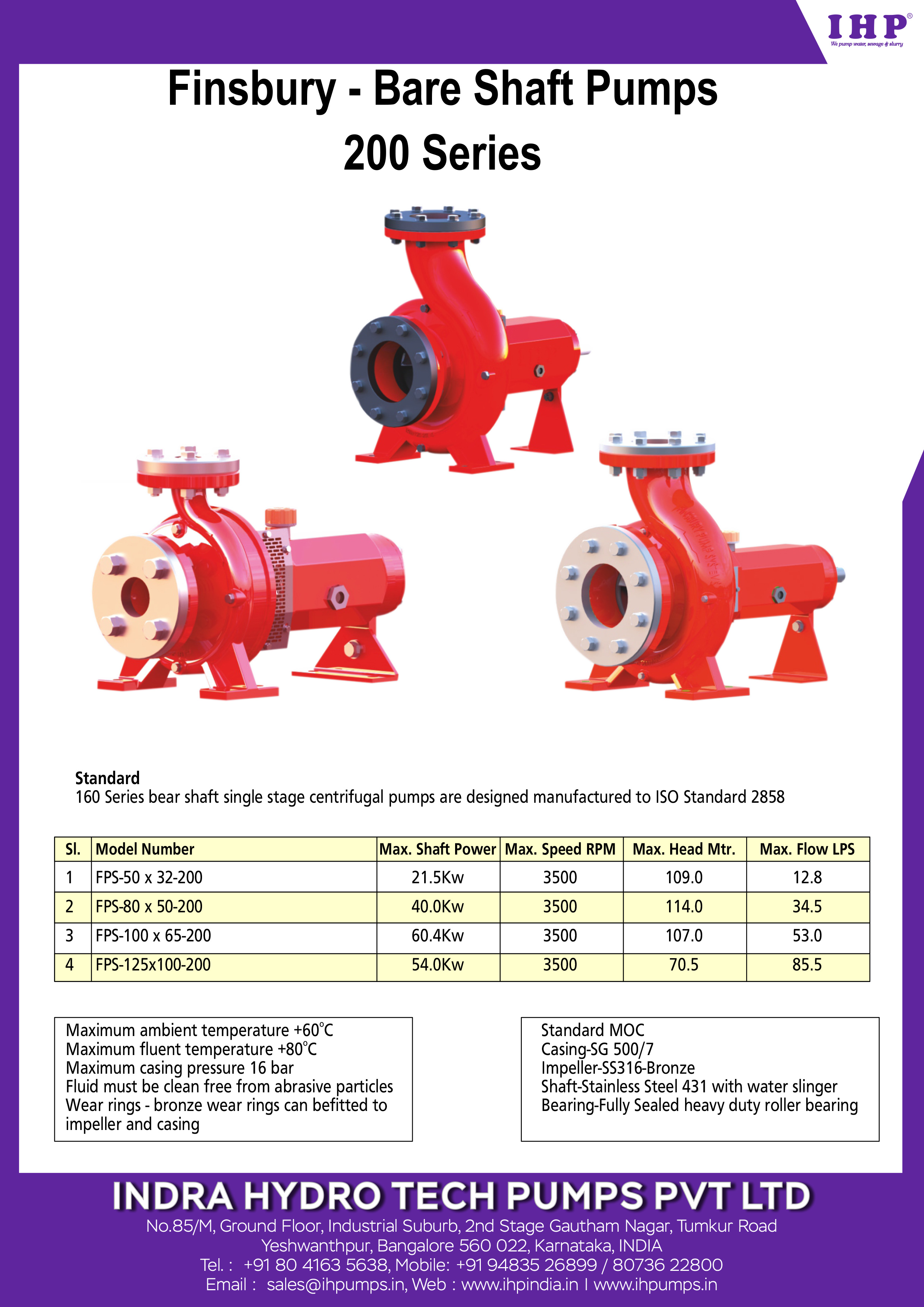 Performance curve : The Performance curves are based on a Kinematic viscosity value of 1mm2/s and a density of 1000kg/m3 at 15°C