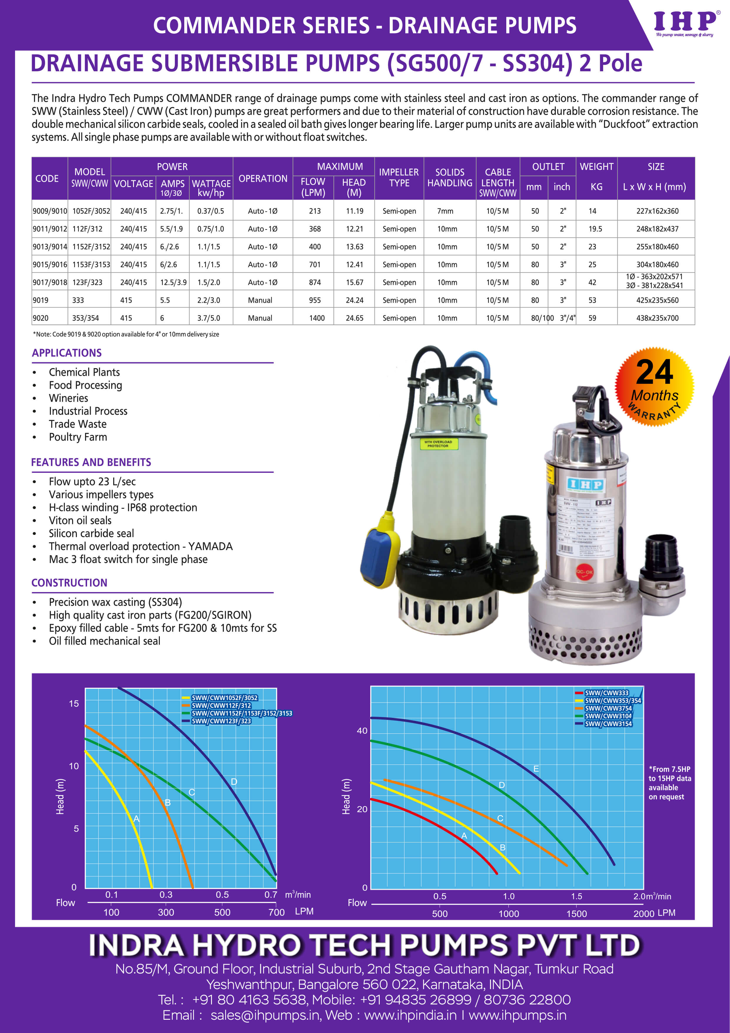 SWW / CWW series has 19 models that offer (Side Discharge)