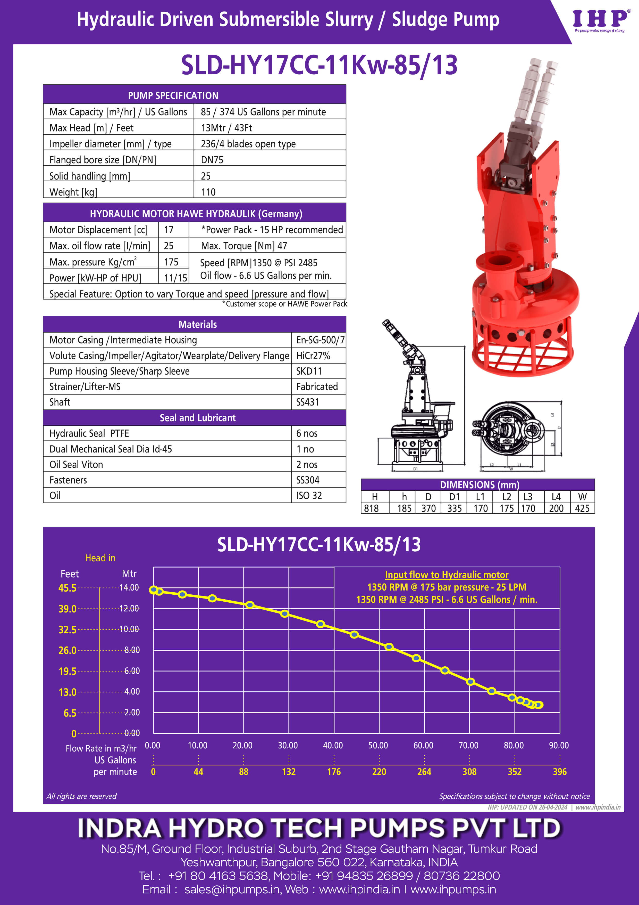 Hydraulic Dirven Submersible Slurry or Sand Pump